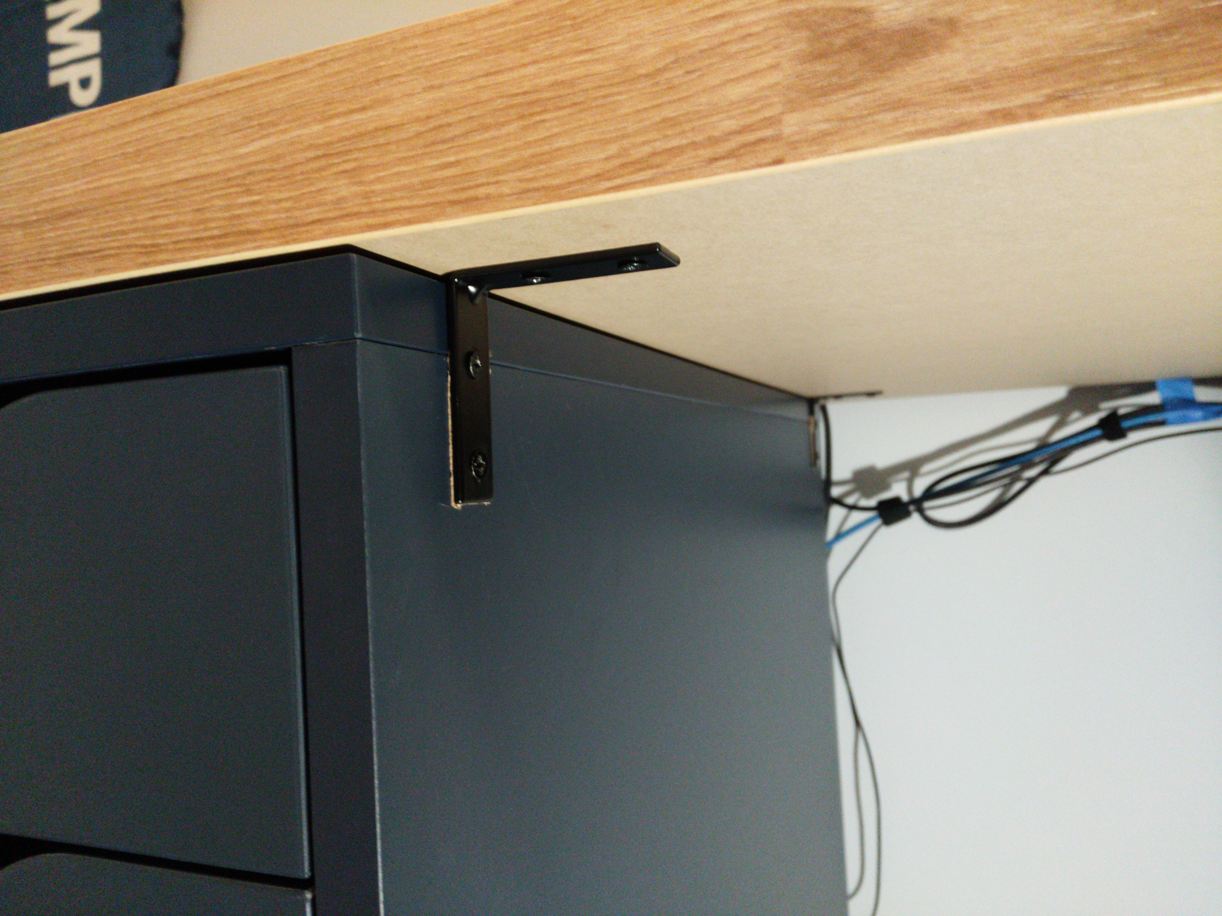 To prevent the desks from coming unaligned with the drawers I used the corner braces to mount the drawers to the undersides of the desks. Just 2 braces were enough to hold everything in place. Additionally, small mending plates could be used to add even more security, but I found them unnecessary for that purpose.